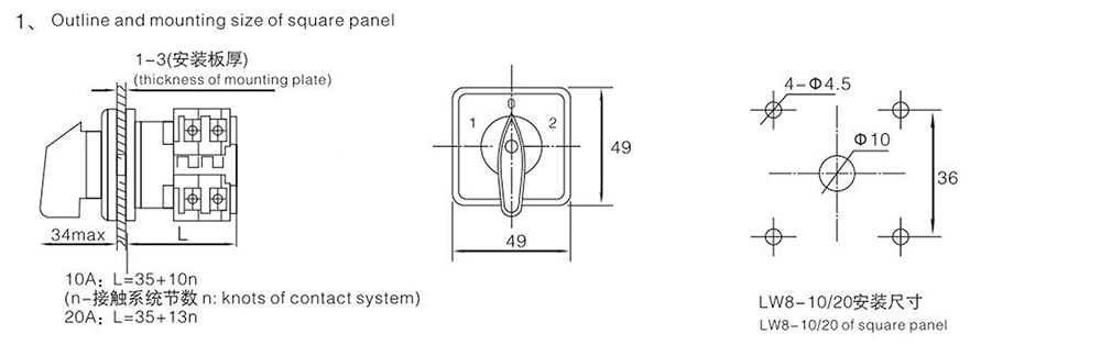 - Erinomainen turvallisuussuorituskyky: 10 A kolmiasentoinen pyörivä nokkakytkin, joka käyttää tarkasti valitut korkealaatuiset materiaalit ja yleinen kompakti rakenne, sillä on erinomainen eristyskyky, mikä varmistaa sähköturvallisuuden lähteestä. kytkentätoiminto on sujuvaa ja joustavaa sekä korkea turvallisuus ja luotettavuus.
