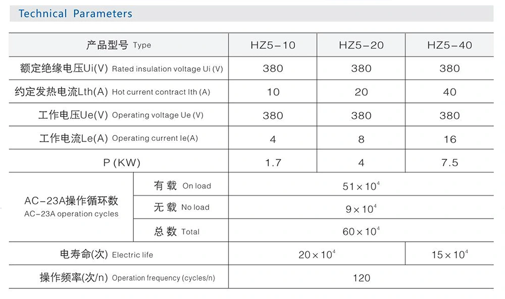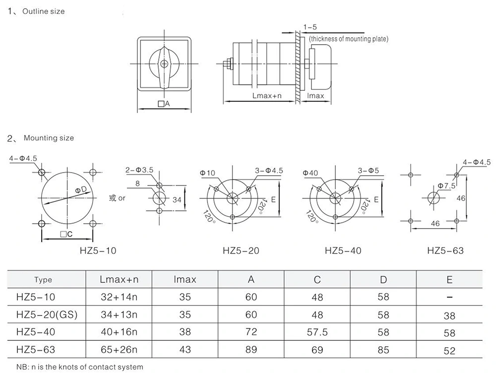 20A Combination Rotary Cam Switch 4kW kuuluu HZ5-yhdistelmäkytkinten sarjaan. Sen tärkeimmät tekniset tiedot ovat seuraavat: Sovellettavat piirit ovat AC 50Hz; nimelliskäyttöjännite: AC enintään 380 V, DC enintään 240 V; nimellisvirta: maksimi 63A; nimellisteho: 4 kW; tämän mallin nimellisvirta on 20A.